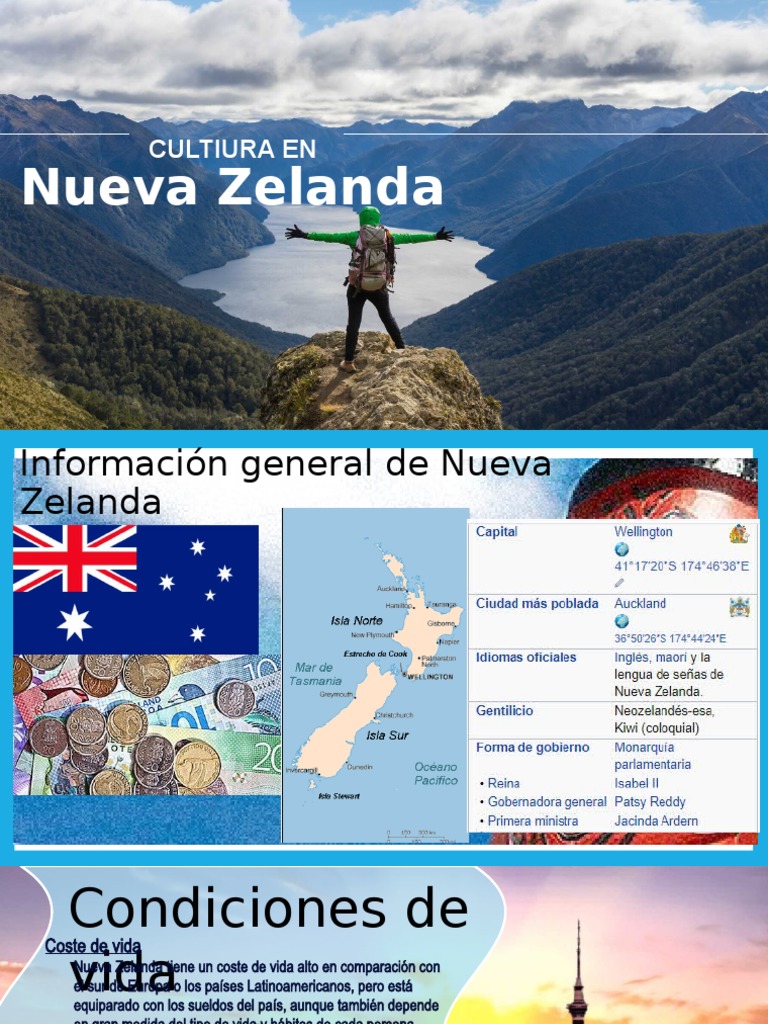 Ven con ef a estudiar a nueva zelanda y descubre la fascinante cultura y los maravillosos paisajes de una de las islas mas majestuosas del mundo. Por un lado, encontramos una excelente mezcla de origen: La población es de más de 4 millones de habitantes y está compuesta. La moneda actual de nueva zelanda es conocida como kiwi esta compuesta de 6 monedas las cuales son del valor 5centavos, 10centavos. Aprende inglés en nueva zelanda! El ingls es la lengua ms hablada : La lengua de señas neozelandesa , usado por el 0,5% de sus habitantes. Inscríbete en los cursos ef de inglés en nueva zelanda y aprende inglés en una isla multicultural y espectacular. La isla norte y la isla sur. Nueva zelanda es un país en el que diversidad y riqueza se concentran. La presencia del idioma español en nueva zelanda comienza en la década del 60 y principios de la del 70 principalmente por inmigrantes provenientes de los países hispanohablantes de sudamérica. Nueva zelanda tiene tres idiomas oficiales: Añadir oferta trabajo idiomas/multilingüe, práctica profesionales, oportunidades en la web de anuncios gratis.